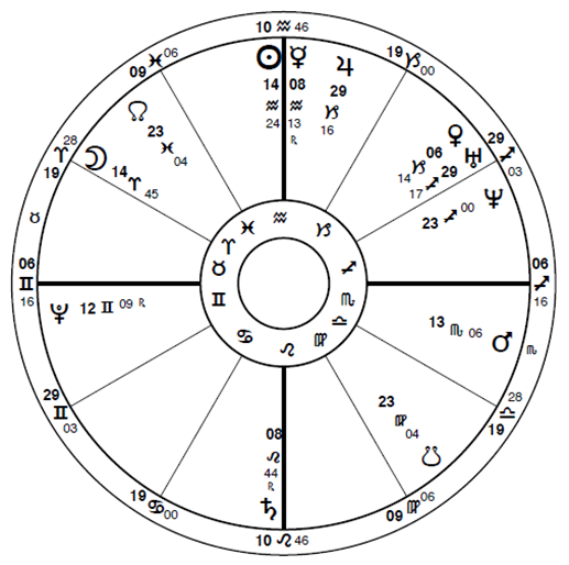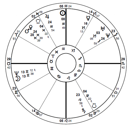 There are other progressed positions, but they do not activate the natal. We must look to the diurnal chart and the transiting positions to see more activations. We will start with the key aspects we have noticed repeating themselves throughout the charts we have examined (early cardinal, early fixed and mid-mutable):