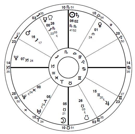 - NYS natal Sun 4 Leo 13, Midheaven 2 Leo 45, Uranus 00 Leo 45 conjunct NYC natal Saturn opposed Mercury as given.
