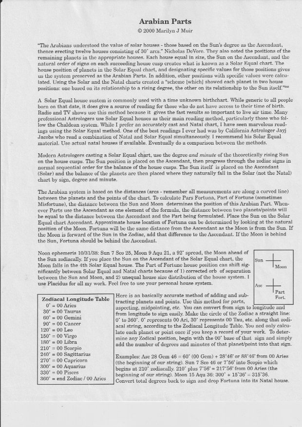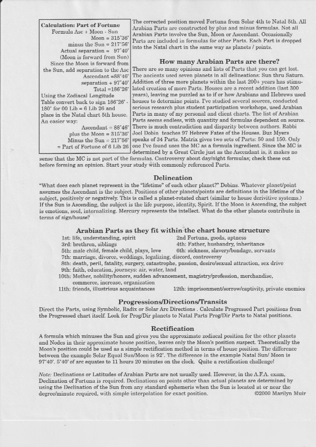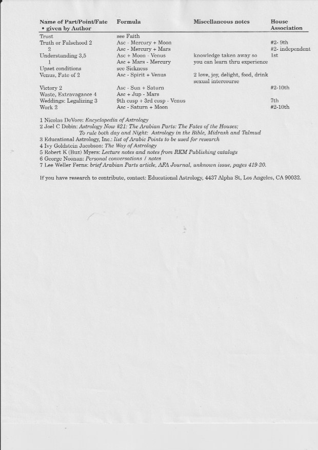 Here it is November 2025 and I’m deciding what next to present to my readers. I have been studying Astrology since 1973, and as a Scorpio researcher-type, I have information overload in my files. I found scans of my introductory lesson on Arabian Parts from 2000. Since we all must begin somewhere and then build on good basics, this article does that. The roots haven’t changed, so this introduction creates a solid base to help continue the study of the multitude of AP techniques currently available. Because so many years have elapsed, I re-read the material to prepare notes for my current readers.
